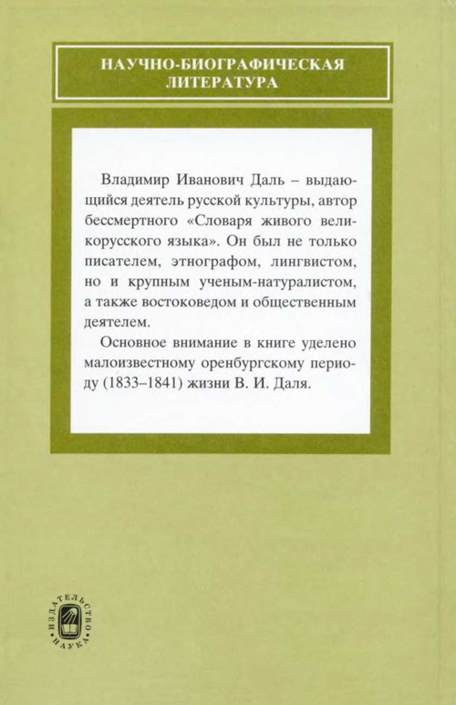 Основное внимание в книге уделено малоизвестному оренбургскому периоду (1833-1841) жизни В. И. Даля.