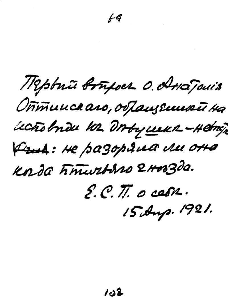 Первый вопрос о. Анатолия Оптинского, обращенный на исповеди к девушке-невесте: не разоряла ли она когда птичьего гнезда.