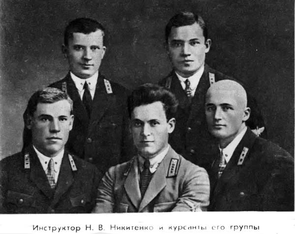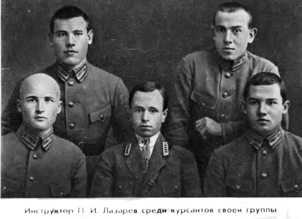 Инструктор П. И. Лазарев среди курсантов своей группы