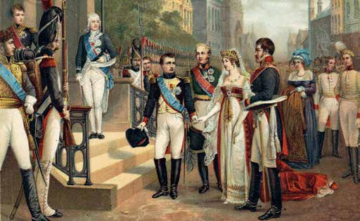 Отношения с Францией еще более осложнились после неудачных попыток Бонапарта в 1808 г. и 1809 г. посвататься к великим княжнам Екатерине Павловне и Анне Павловне. В то время французский император решил развестись с Жозефиной, которая не могла подарить ему наследника. Однако Александр не захотел родниться с будущим противником. Мария Фёдоровна вообще пришла в ярость от перспективы такого «блестящего мезальянса». Не желая признавать монархический титул Наполеона, полученный им не в силу рождения, она категорически заявила, что дочь одного и сестра другого российского императора не может стать женой сына безвестного адвоката из Аяччо. В результате любимая сестра Александра I Екатерина Павловна в апреле 1809 г. была поспешно выдана замуж за принца Георгия Ольденбургского. Что касается Анны Павловны, то, поскольку в момент сватовства ей было всего четырнадцать лет, Наполеону отказали в связи с несовершеннолетием его избранницы.