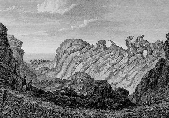 На высоте 18 000 футов смельчаки увидели на камне последний клочок лишайника, приникший к валуну, после чего все признаки органической жизни исчезли, так как на такой высоте не живут ни растения, ни насекомые{2}. Пропали даже кондоры, сопровождавшие их в прежних восхождениях. Так как туман забелил воздух, превратив его в непонятное пустое пространство, Гумбольдт чувствовал себя совершенно оторванным от обитаемого мира. «Казалось, – писал он, – что мы были заперты внутри воздушного шара»{3}. Затем внезапно туман рассеялся, обнаружив снежную вершину Чимборасо на фоне синего неба. Первой мыслью Гумбольдта было: «Великолепный вид!»{4} Но потом он увидел необъятную трещину напротив них (в 65 футов шириной и около 600 футов глубиной){5}. Путь к вершине пролегал только через нее. Гумбольдт измерил высоту, на которой они находились, – 19 413 футов{6}, до вершины оставалась какая-то тысяча футов.