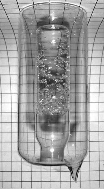 Тесла был убежден, что весь космос наполнен этими частицами, постоянно бомбардирующими атмосферу и земную поверхность, а также все другие виды материи, точно так же как в его углеродно-игольчатой лампе, где самый твердый материал превращается в атомную пыль. И здесь изобретатель сделал еще одно открытие, намного опередившее свое время. Он предположил, что одним из проявлений бомбардировки нашей планеты порывами солнечного ветра высокоэнергетических частиц является северное сияние. Тесла стал разрабатывать электронные лампы в начале 1890-х годов, полностью ожидая, что они окажутся подходящими для обнаружения радиосигналов. Позднее он все свое время осваивал профессию стеклодува и изобрел тысячи вариантов ламп, которые использовал в радиоисследованиях и для получения света. Так, однажды он поместил длинную стеклянную трубку, частично вакуумированную, внутрь более длинной медной трубки с закрытым концом.