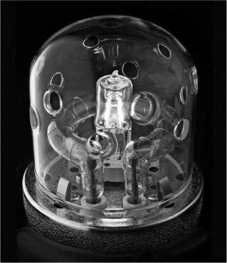 С известной долей фантазии можно предположить, что на примере углеродной электронной лампы Тесла продемонстрировал один из принципов построения растрового электронного микроскопа. Лампа испускала наэлектризованные частицы, выстреливаемые по радиусам из крошечного «капельного электрода», у которого поддерживался высокий потенциал. При этом на вогнутой поверхности стеклянного шара эти частицы воспроизводили увеличенный фосфоресцирующий образ точечного участка электрода, из которого они вылетели. Получается, что единственным ограничением на увеличение, которого можно было бы достичь, являлся только внутренний радиус стеклянной колбы. Чем больше ее радиус, тем больше будет увеличение, а поскольку длина волны электронов неизмеримо меньше у фотонов видимого света, то и увеличение электронного микроскопа в миллионы раз превышает разрешающую способность самых сильных световых приборов. В принципе, с помощью электронного микроскопа можно воочию убедиться в реальности существования молекул и даже атомов, получив их четкие изображения.