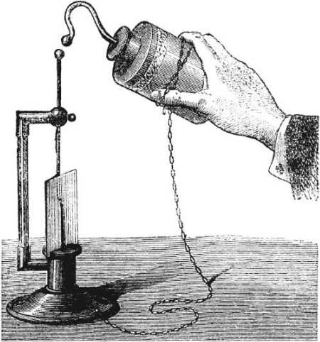Один из первых элементов электрической колебательной системы — конденсатор лейденская банка.