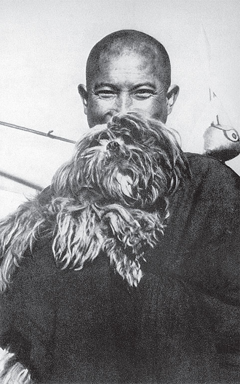 Монах с монастырской собакой тибетской породы