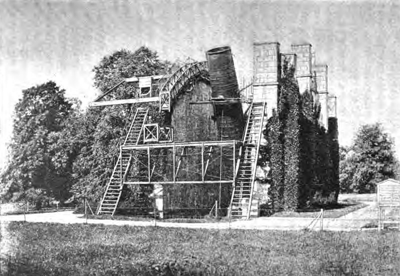 Об оптических качествах этого телескопа столько уже написано, что говорить еще было бы излишне. Напомню лишь, что многие из туманностей, названных Гершелем «неразрешимыми», разделились в эту трубу на отдельные звезды, и лорд Росс пришел сперва даже к ошибочному заключению, полагая, что на небе вовсе нет неразложимых туманных пятен. Только впоследствии выяснилось, при помощи спектральных исследований, что и для этого левиафана должны существовать туманности, не разлагаемые на отдельные звезды, туманности, которые представляют не скопления звезд, а состоят из однообразной массы светящегося газа.