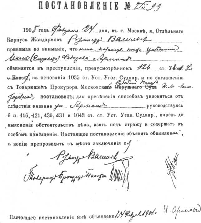 Постановление о первом аресте.