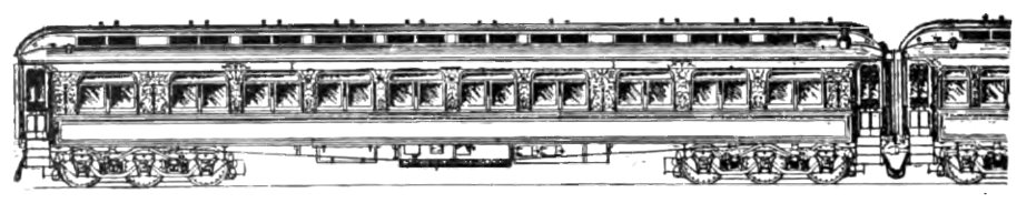 Стоить наконец упомянуть и о соединении пульмановских вагонов между собою в поездах. Кузов каждого вагона поставлен на основную платформу, под которой имеются две тележки по концам, а каждая тележка снабжена 6-ью колесами, так что вагон катится на 12-ти колесах, и это совершенно устраняет толчки на стыках рельсов. По концам вагона устроены отвесные железные рамы, соединенные с кузовом вагона пружинами, скрытыми под кожаным кожухом в виде гармоники. Эти рамы от действия пружин выступают наружу даже по сравнению с буферными подушками. Когда несколько вагонов соединяются вместе, то упомянутые рамы быстро свинчиваются остроумно устроенными зажимами, а пружины рам, под влиянием нижних скреплений у буферов, остаются всегда сжатыми и тем способствуют полному соединению вагонов. Таким образом, двигается ли поезд по прямой линии, или по закруглению пути, все вагоны соединены между собою не только внизу у основных платформ, но и по высоте до самой крыши, что представляет большое преимущество в смысле безопасности: отдельный вагон не может опрокинуться. На площадках у соединений вагонов положены продольные коврики, так что даже малое дитя может прогуливаться по всему поезду без всякого опасения. В каждом поезде, совершающем длинный переезд, имеются еще вагон-столовая, вагон с залою для бритья и ванной и т. д. Словом, пульмановские вагоны в поезде — это настоящая роскошная гостиница на колесах, и целое семейство, заняв места где-нибудь на восточном берегу Штатов, может переехать на западный, не выходя из вагонов. Это имеет важное значение для больных из Нью-Йорка, Вашингтона и т. д., совершающих переезды в Калифорнию, изобилующую климатическими станциями. Из главных городов особые поезда, состоящие исключительно из описанных пульмановских вагонов (Pullmann vestibuled trains), отходят ежедневно по одному разу для беспересадочной перевозки пассажиров через весь материк.