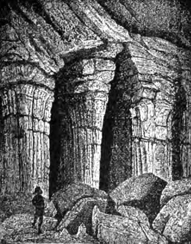 Итак, покончив с ужином, мы втроем отправились за ожидавшим нас проводником. Еще в коридоре гостиницы каждому из нас дали по масляной лампе без стекол, и затем мы вышли в сад с заднего крыльца. На дворе было тепло, темно и совершенно тихо. Пройдя с полверсты по тропинке, мы начади спускаться в узкое и мрачное ущелье между двумя горами, покрытыми лесом. Скоро звездное, ясное небо скрылось, и мы очутились в широкой галерее с довольно ровным полом и мрачным каменным природным сводом. Пройдя саженей 20, мы остановились перед массивною железной решеткой с калиткою на замке. Пещера держится запертою, и хотя тут не хранится никаких драгоценностей, но прогулки без проводников весьма опасны: среди бесчисленных переходов легко заблудиться, и тогда путник кончает смертью в каком-нибудь редко посещаемом закоулке.