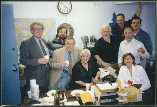 Стоят во втором ряду и на лесенке: Эдуард Служевский, Лев и Алёна Рейтблат, Белла Мизрахи, Лариса Глэд, юбиляры, за ними Софа Шварцман, а в будочке — Михаил Беломлинский