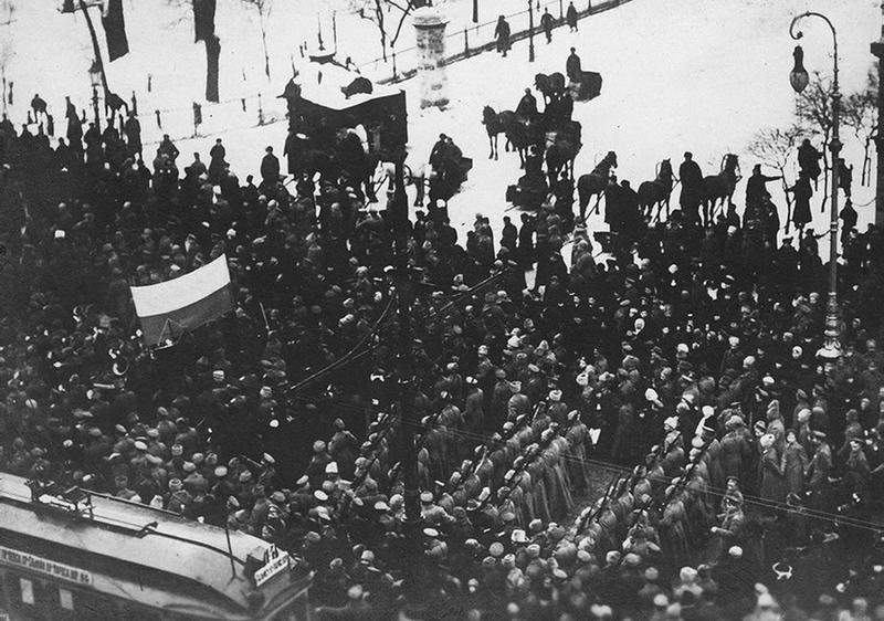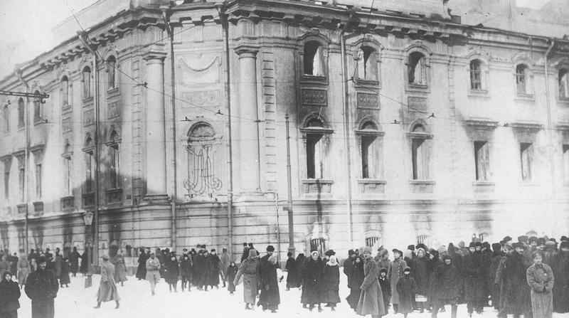 В ночь на 27 февраля военный министр М.А. Беляев и главнокомандующий Петроградским военным округом С.С. Хабалов получили известия о волнениях солдат в казармах. Эти слухи опровергались. Но тогда же правящий кабинет, заподозрив неладное, направил государю телеграмму с просьбой «немедленно вернуться». При этом все, кроме Протопопова, высказались за установление военной «диктатуры», а роль диктатора отводили «генералу, пользующемуся некоторым престижем в глазах армии, например генералу Рузскому»[67]. Но вера беспомощных и напуганных царских министров в спасительную для них роль армии и диктатуры была напрасной. Утром 27 февраля, после всех бравых опровержений, восстал запасной батальон лейб-гвардии Волынского полка. Унтер-офицер Кирпичников, сын профессора, сумел поднять солдат против «самодержавия». Восставшими был убит капитан Лашкевич, после чего солдаты вышли с оружием на улицу. Вместе с волынцами восстали лейб-гвардии Павловский и Литовский полки. Выборгская сторона находилась в руках рабочих, по Литейному мосту бунтующий пролетариат перешел на левый берег Невы и начал братание с мятежными полками. Восставший народ и перешедшие на его сторону солдаты строили баррикаду на Литейном проспекте. Здесь был захвачен Арсенал, здание Окружного суда подожгли, из Дома предварительного заключения освободили арестантов. Для обороны центра столицы Хабалов и Беляев вызвали воинские части, считавшиеся более надежными. Сводный отряд полковника А.П. Кутепова [1 тыс. солдат] был брошен против повстанцев, но, прорываясь к Литейному, был остановлен на Кирочной улице, где завязал перестрелку с противником. Вскоре Кутепову пришлось отказаться от активных действий из-за явного недостатка сил. В решающий момент вскрылась ненадежность «огромного большинства войск», поэтому их оставили в казармах. Вслед за Окружным судом восставшие подожгли Арсенал, здания МВД и охранки, дома военного губернатора и министра двора, многие полицейские участки. Из тюрем выпускали заключенных. Расправы солдат над командирами и офицерами становились обыденным явлением. К середине дня бои шли по всему городу; повстанцы контролировали почти все правобережные районы, Литейную и Рождественскую части города, южные рабочие окраины. На Невском проспекте шло настоящее сражение, окрестности Таврического дворца также перешли под власть инсургентов.