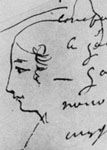 "Между Екатериной Николаевной и Пушкиным завязывается тесная сердечная дружба, – пишет современник, – и, наконец, после продолжительной переписки, Екатерина Ушакова соглашается выйти за него замуж». В альбомах сестер вновь появляются сатирические карикатуры, шуточные надписи и стихи. Альбом пестрит изображениями Анны Олениной, иногда явно издевательскими. На одном из них барышня (Оленина) протягивает руку молодому человеку, который ее почтительно целует. Здесь мужская фигура, с лицом, обрамленным бакенбардами, очень напоминает портреты Пушкина. К этой картинке относится следующая подпись: