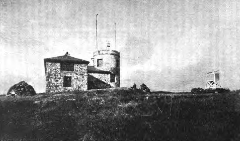 Метеорологическая обсерватория на Синем холме (Blue Hill Observatory) находится в 12-ти верстах к югу от Бостона. Я поехал туда по стариннейшей в Америке железной дороге The Old Colony R.R. и от станции Редвиль (Readville) взял маленькую американскую карету. На пороге обсерватории я был встречен наблюдателем Клэйтоном (Н. Clayton), который затем и показал мне ее во всех подробностях. Эта обсерватория принадлежит к разряду «горных» и основана в конце 1884 года на частные средства. Её положение: широта 42°12?44?, долгота от Гринвича 71°6?53? и высота над уровнем океана 635 футов. Здание обсерватории не обширно, но отделано весьма уютно и даже роскошно.