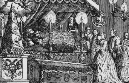Екатерина II у тела Елизаветы Петровны. Гравюра XVIII в
