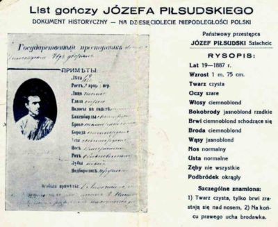 Документ полиции «Государственный преступник Иосиф Пилсудский».1887 год.
