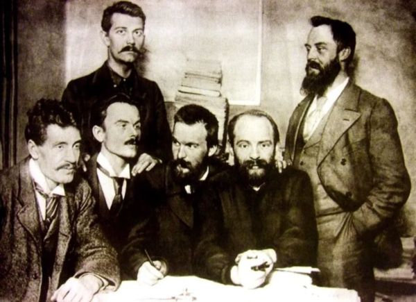 Группа деятелей ППС в Лондоне 1896 год. Сидят (слева направо) Игнацы Мосьцицкий, Болеслав-Антон Енджеевский, Юзеф Пилсудский, Александр Добский. Стоят: Болеслав Миклашевский и Витольд Йодко-Маркевич.