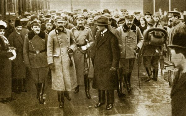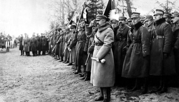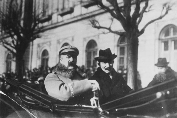 Встреча Юзефа Пилсудского в Варшаве 12 декабря 1916 года. Эту фотографию часто ошибочно относили к 10 ноября 1918 года, когда Пилсудский прибыл в Варшаву из Магдебурга.
