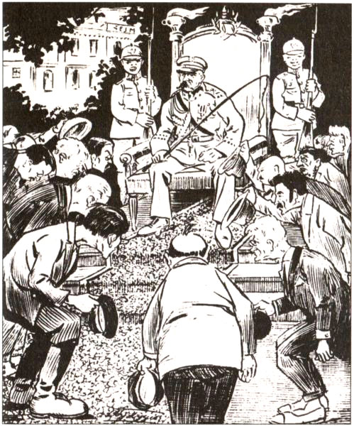 Маршал Пилсудский разговаривает с депутатами Сейма: «Я очень люблю беседовать с панами». Рисунок из журнала «Муха». 1927 год.