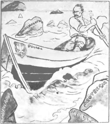 «Теперь попробую при помощи нового Сейма выйти в открытое море». Рисунок из журнала «Муха» (№ 11 от 16 марта 1928 года).