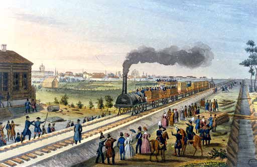 Но самое главное – при Николае I были построены первые в России железные дороги. Этому предшествовала долгая и горячая дискуссия в правительственных кругах. В 1834 г. в Россию приехал инженер, строитель железных дорог в Австрии Ф. Герстнер. В письме к императору он постарался убедить его в крайней «полезности» железных дорог для страны с такой обширной территорией, как Российская империя. «Нет такой страны в мире, – писал он, – где железные дороги были бы более выгодны и даже необходимы, чем в России». Однако многие высшие сановники, включая и министра финансов, и главноуправляющего (министра) путями сообщения активно выступали против железнодорожного строительства. Доводы выдвигались самые разные, даже фантастические: что, мол, зимой дороги будет заметать на несколько месяцев, что на дрова от паровозов переведут все леса, что перегруженные вагоны будут ломать рельсы, что дорога «испортит нравственность» (!), что непобедимость России – в бездорожье…
