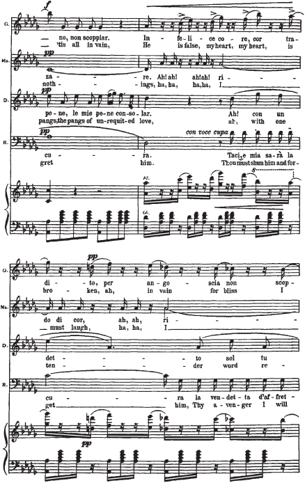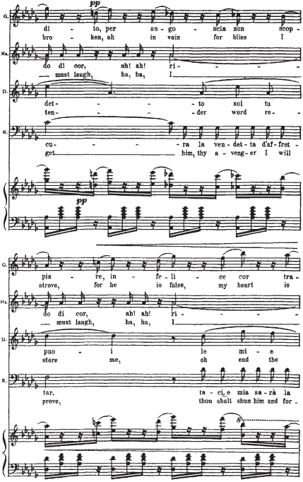 Приведем в качестве примера отрывок из IV акта оперы Дж. Верди «Риголетто».