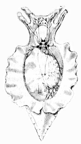 Рис. 7.5. Аплазия. Этот моллюск имеет высокоорганизованную нервную систему с крупными, индивидуально распознаваемыми нейронами, особенно в абдоминальном ганглии.