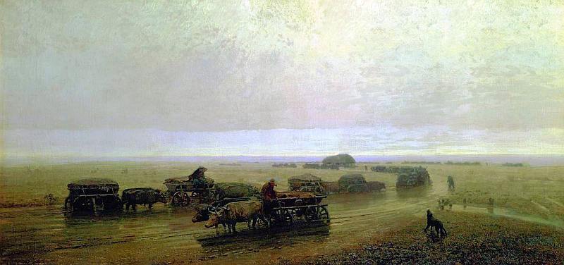 К передвижническому периоду относятся такие произведения художника, как «Осенняя распутица» (1872, Государственный Русский музей, Санкт-Петербург), «Чумацкий шлях в Мариуполе» (1875, Государственная Третьяковская галерея, Москва), «Забытая деревня» (1874, Государственная Третьяковская галерея, Москва), представляющие по своему безрадостному настрою типично передвижнический пейзаж, выражающий исключительно гражданские чувства автора.