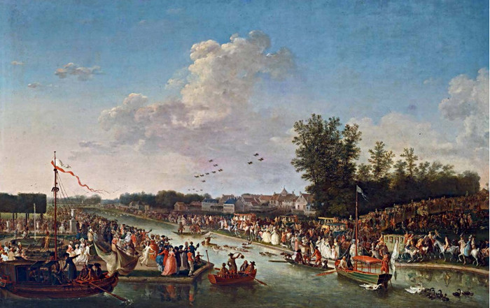 Путешественники посетили Севр и Марли, в замке Шантийи принц Конде дал в их честь обед, сервированный на золотой и серебряной посуде. Затем состоялась охота на оленя с факелами. В память о визите Конде заказал живописцу Жану-Батисту Лепану картину «Охота на оленя в Шантийи», которая была преподнесена Павлу Петровичу в 1785 году и хранится теперь в Павловском дворце. Рядом с замком находилась деревня Шантийи. Воспоминания баронессы Генриеты д’Оберкирх, подруги детства Марии Фёдоровны, путешествовавшей вместе с ней и Павлом по Франции, Германии и Бельгии, рисуют картину пребывания графа и графини Северных в деревне: «После наступления ночи, как мне показалось, на всех листьях зажглись бумажные фонарики. В зеленых кабинетах и в павильонах устраивались танцы. Ужин был накрыт в деревушке, в мило придуманных и живописно расположенных сельских домиках в центре английского сада. Самая большая хижина была внутри украшена листвою, а снаружи окружена всеми инструментами хорошего пахаря… По окончании стола ездили на судах по протекающей речке через оную часть сада, на которых была музыка и оныя суда были украшены фонарями».