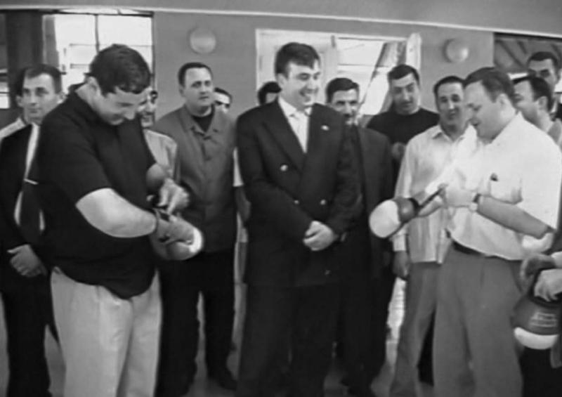 23 ноября 2003 года Гиоргоба (День святого Георгия покровителя Грузии. — Л.М.) увенчалась тем, что сторонники «Национального движения» ворвались в Парламент. Миша с розами в руках символично отпил приготовленный для президента Шеварднадзе чай и, тем самым, как бы взошёл на «царский трон». Новоиспечённые депутаты, в основном от «Союза граждан» и блока «Возрождение» (партия аджарского лидера Аслана Абашидзе. — Л.М.), успевшие вкусить блага «народных избранников» лишь на пятнадцать минут, покидали Парламент, поджав хвосты. Кроме двух-трёх депутатов из «Возрождения» все были абсолютно молчаливы и по-рабски покорны, в том числе и чемпион мира.