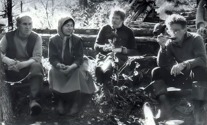 День пасмурный, но и в такую погоду места кругом очень красивые. Основные хозяйственные дела сделаны, и мы собрались вокруг дымокура, отгоняющего мошку. Записываем рассказы Лыковых о своем житье, об историях, случавшихся с ними за долгие годы отшельничества. В свою очередь, задаем им вопросы по специальной социологической программе, составленной доцентом, кандидатом педагогических наук Петром Сергеевичем Гранкиным. В этой программе 176 вопросов, ответы на некоторые помогут определить образованность и воспитанность Лыковых, развитость их физической, интеллектуальной, эмоциональной и волевой сфер. Кроме того, предстоит выяснить и роль труда в становлении семьи и воспитании детей Лыковых. Вероятно, вдумчивый последующий анализ этого вопросника поможет сделать социологам интересные и полезные для людей выводы.