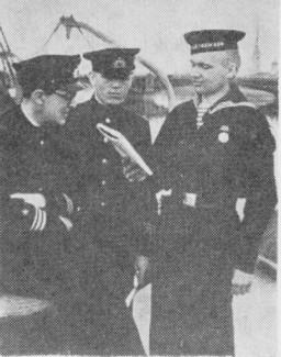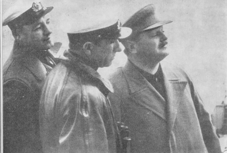 А. А. Жданов, Н. Г. Кузнецов, В. Ф. Трибуц в море на учении