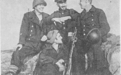 Слева направо: командир стрелковой бригады Н. П. Симоняк, командир военно-морской базы Ханко С. И. Кабанов, начальник политотдела бригады Г. П. Романов
