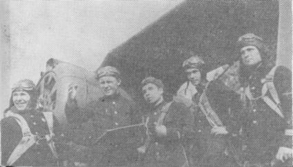 Экипаж командира А. Т. Дроздова: штурман Н. Д. Котов, стрелок-радист В. М. Кузин (слева направо).