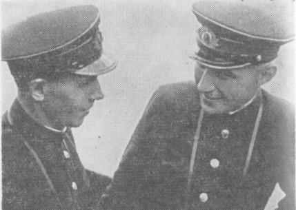 Командир подводной лодки "С-4" Д. С. Абросимов (справа) и его помощник Д. Д. Винник