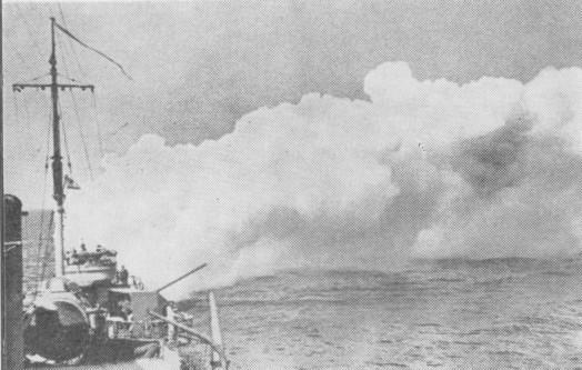 Эскадренный миноносец ведет огонь по берегу