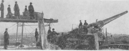 12-дюймовое орудие "Красной Горки" бьет по сухопутным позициям врага