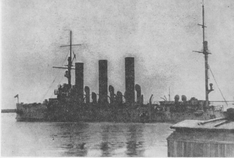 Крейсер "Аврора" в гавани Ораниенбаума осенью 1941 года
