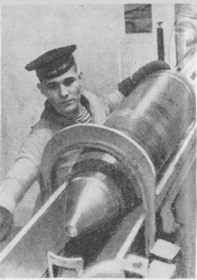 Краснофлотец А. А. Ромашкин досылает очередной снаряд