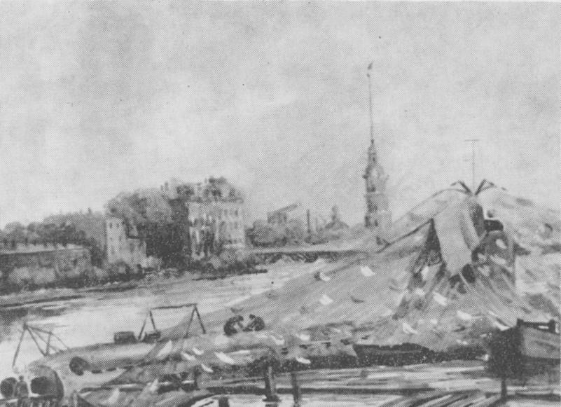 Вражеская артиллерия обстреливает корабли на Неве