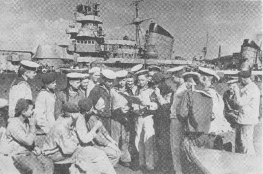 Митинг личного состава на линейном корабле "Октябрьская революция"