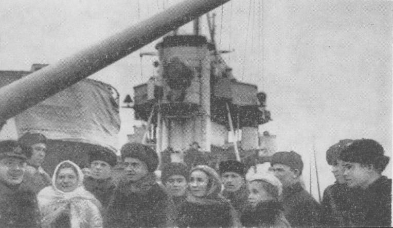 Делегаты типографии имени Володарского на канонерской лодке «Красное Знамя»
