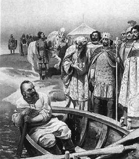 Отозвались на песню с соседней ладьи, подхватила ее другая, третья. И загремел над дунайским простором могучий хор. Жива дружина, жив князь. Будут еще битвы, будут победы.