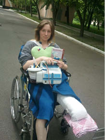 Перша прогулянка відбулася в київському госпіталі. У неділю мене поранили, а в середу я вже була у Києві. Мені дозволили виїхати на каталці, лежачи, на прогулянку. І тут я зрозуміла: дороги в Києві погані — то дрібниці, справжній жах — це доріжки для пішоходів! Мене трусило шалено, нога боліла. Але світило сонечко, мені морозиво потім передав один з військових. У мене тоді ще з пам’яттю певні проблеми були — трішки забувала, що робила. А коли могла вже сидіти на візочку, намагалася сама виїздити на прогулянки. Було важко, тіло відвикло від такого руху, трусило всю… Стрес був тоді для організму сильний.
