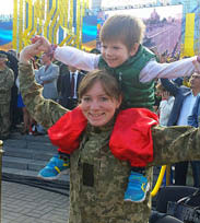 В мене є синочок, Діма. Йому три роки. Поки я була на реабілітації, просила не привозити його — не хотіла, щоб він бачив маму такою. А коли вже більш-менш прийшла до тями, він приїхав. У формі він мене бачив лиш пару разів, і в нього такий захват: «Ого, мама, вау!» Зараз іноді він починає мене смикати — пішли, мовляв, кудись. Кажу йому: «Синочку, я ж іще ногу не одягла». Він несе мій протез: «Одягай швидше і пішли». До протезу звикла не одразу, навіть зараз іноді він мені заважає. Якщо довго сиджу в ньому, доводиться потім і кремом ногу мастити, і ванночки робити. Ті, в кого 25 років немає ноги і вони ходять на протезах, кажуть, що й через роки воно натиратиме, і дискомфорт буде. Кожен ремонт протезу чи культьоприйомника — це щоразу як новий протез, і наново треба звикати. До нього надовго не звикнеш, час від часу його треба регулювати.