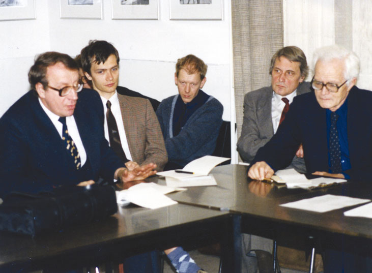 Декабрь 1987 г. Пушкинский конгресс в Амстердаме. Справа налево – B. Н. Турбин, C. Г. Бочаров