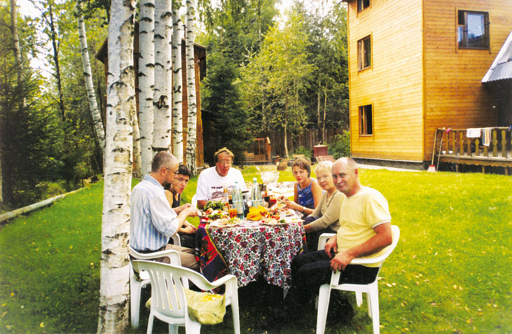 Август 1994 г. На даче с коллегами. Справа – Б. Гаспаров и Р. Вортман