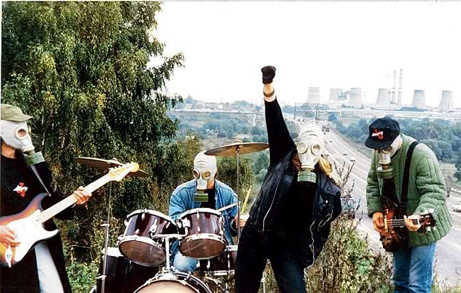 Валерий Саркиссян, Юрий Иванов, Саша Васильев на съемках видео-клипа «Война». Москва, 1990 г.