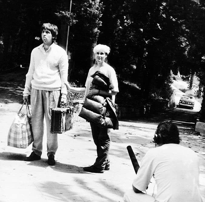 Борис Гребенщиков и Джоанна Стингрей на съемках клипа Come Together. Москва, июнь 1993 г.