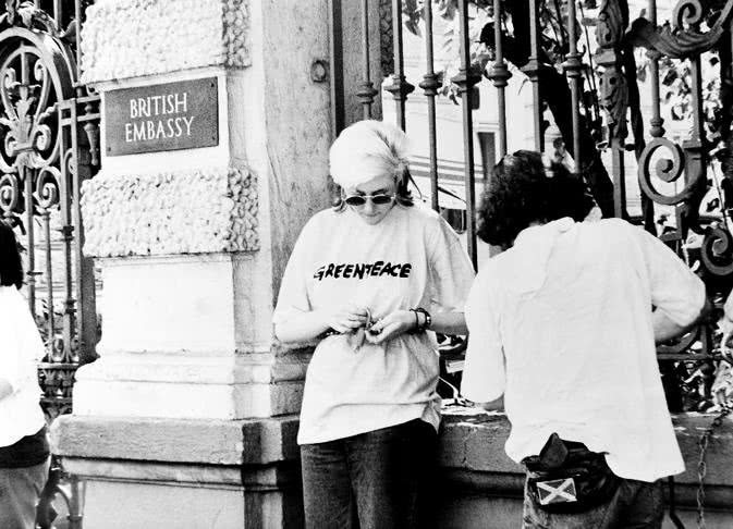 Джоанна на акции «Гринпис» перед зданием посольства Великобритании в Москве.