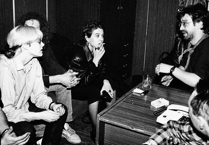 Большой Миша, Джоанна Стингрей и Саша Васильев на съемках клипа Modern Age Rock’n’ Roll. 1989 г.